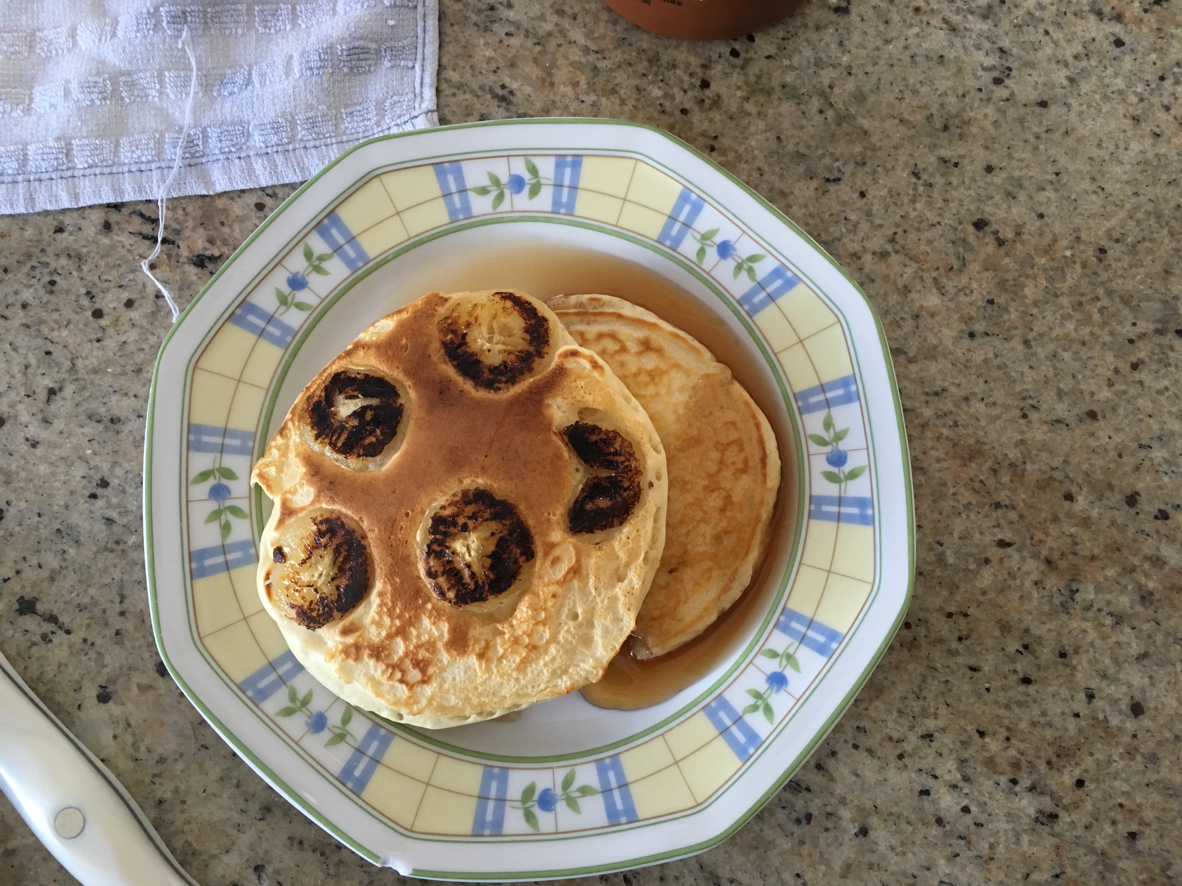 - Sunday morning we still didn’t have power in half of the apartment so we headed over to RM’s mothers to have our pancakes there. I had all intentions of making cute heart shaped ‘cakes, but these still did the trick!