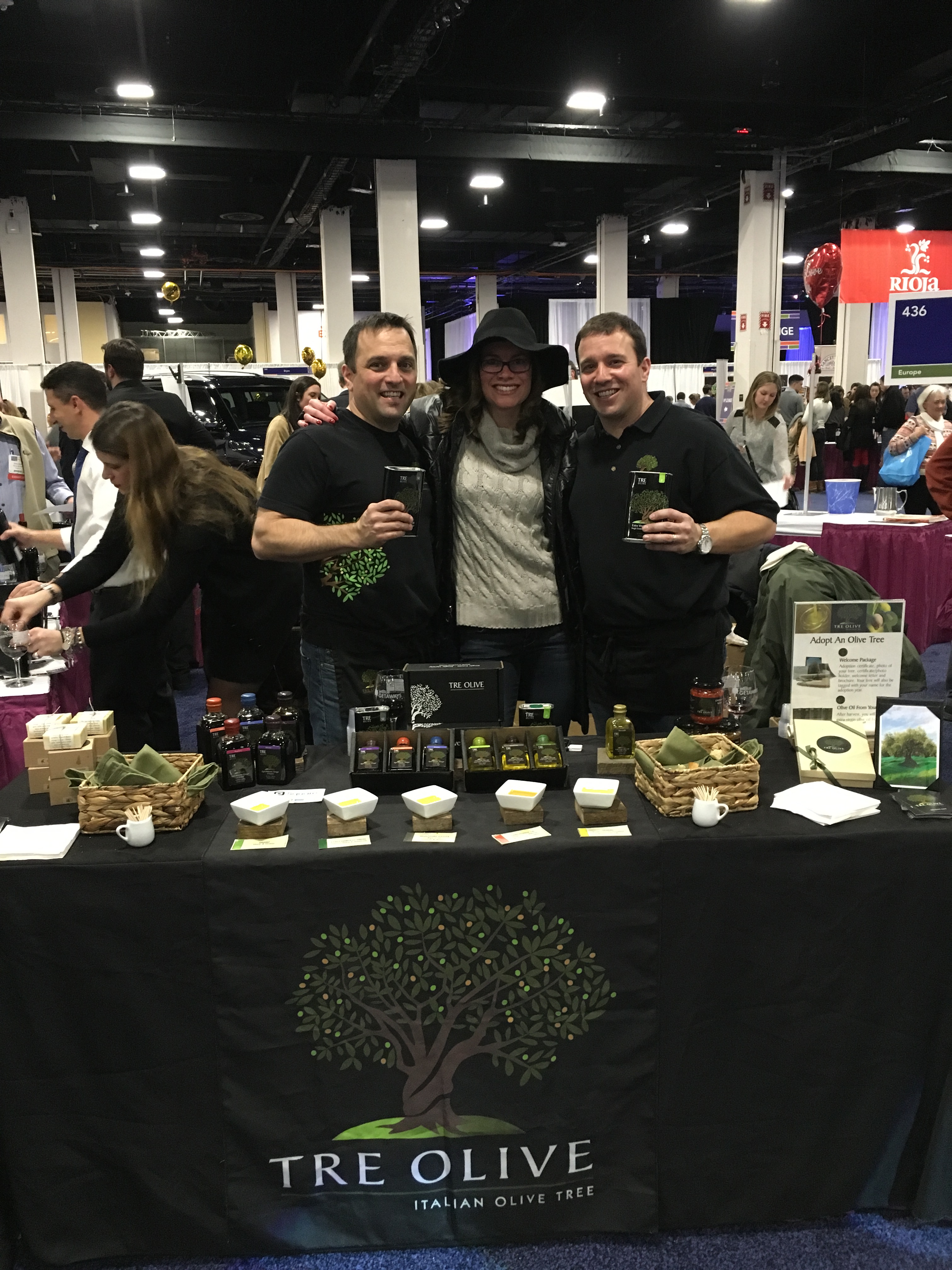 - We also ran into our friends from Tre Olive which was a fun surprise. I’ve posted about them a few times (here and here) so it was great to get to see them. Every time we went to their booth they were slammed, but I did manage to get a photo with them and they were gracious enough to give us quite the goodie bag. Seriously- look at all of the oils they gave us and the fig balsamic which is literally drinkable it’s so tasty. If you’re looking for an interesting gift to give your boss, client, parents, friends who are getting married, etc., Tre Olive has everything you’d need! Their packages make the best gifts.