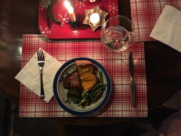 - Eating out vs. eating in- Most of the time, RM and I try to eat in the majority of the time. We shop on the weekends for the week, prep a bunch of food to have handy (I bring my lunch every day, too), but last week we kind of went on a eating out bender. Thursday we went to Buff’s (hadn’t been in SO long), Friday we went to Hopsters (again, hadn’t been in SO long) and Saturday we went to The Local in West Newton, because, well #saturdaydatenight. This is very unlike us to go so many days in a row eating out (unless we are on vacation), and while everything was delicious, we decided to eat IN on Saturday night. RM grilled up some veggie and shrimp skewers and I made a nice big salad. There’s something to be said about making your own meals- it felt really good to eat a nice meal like this!