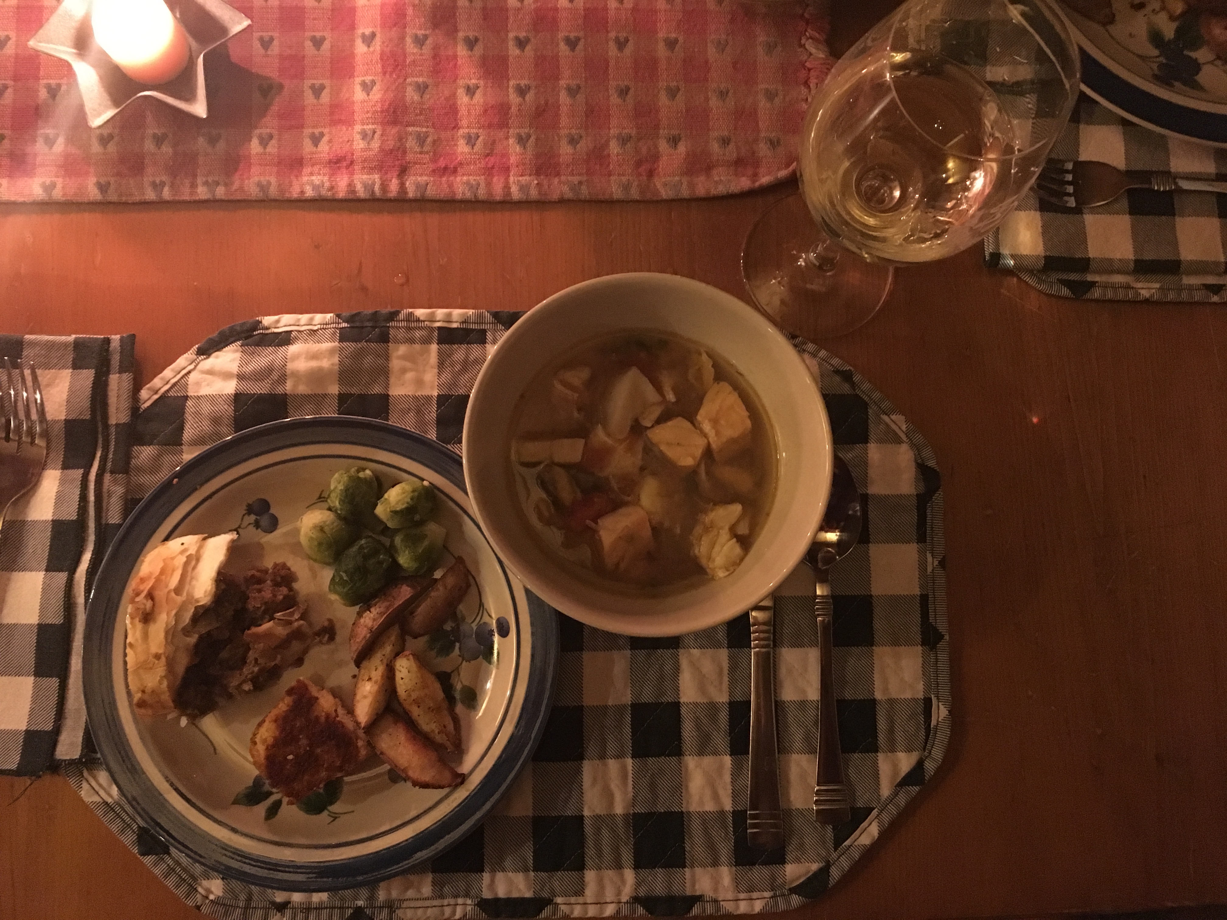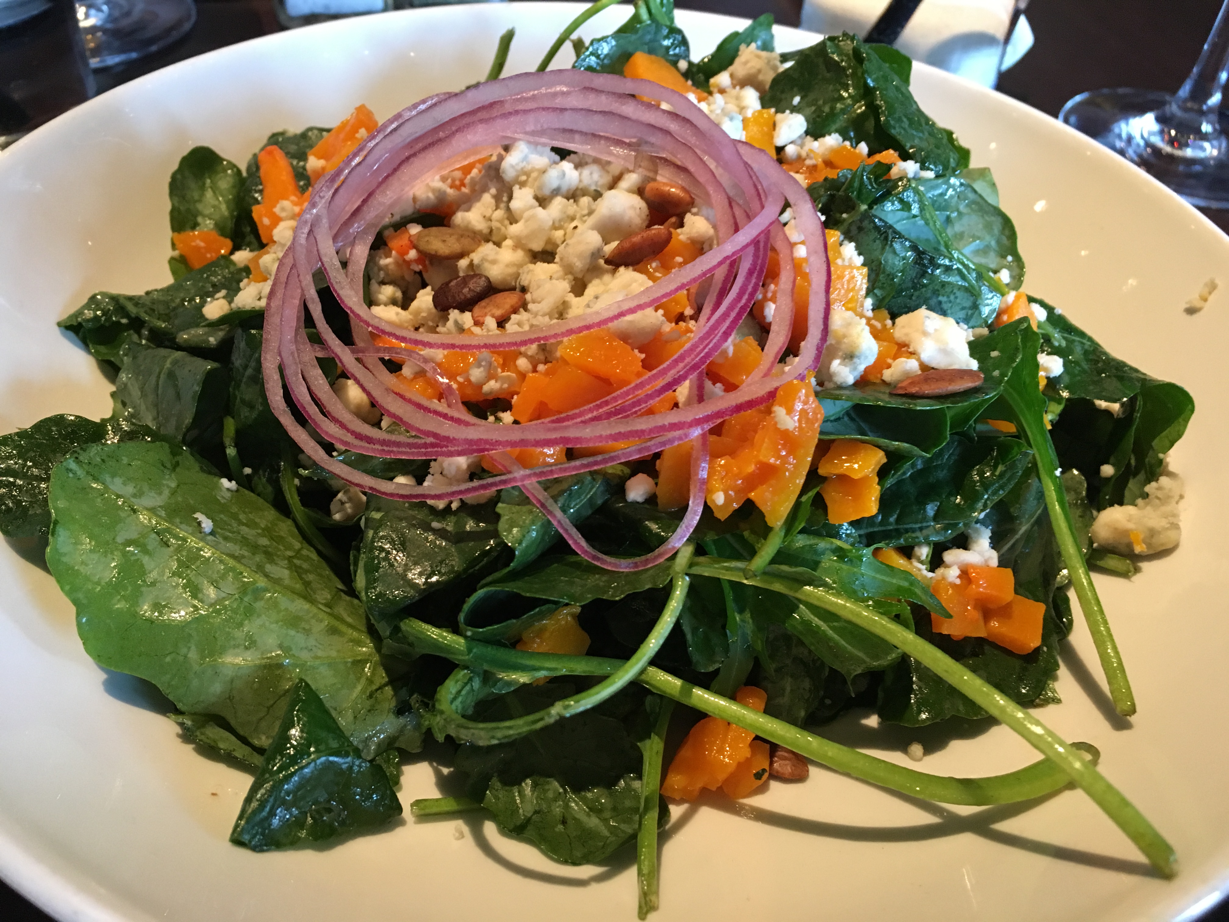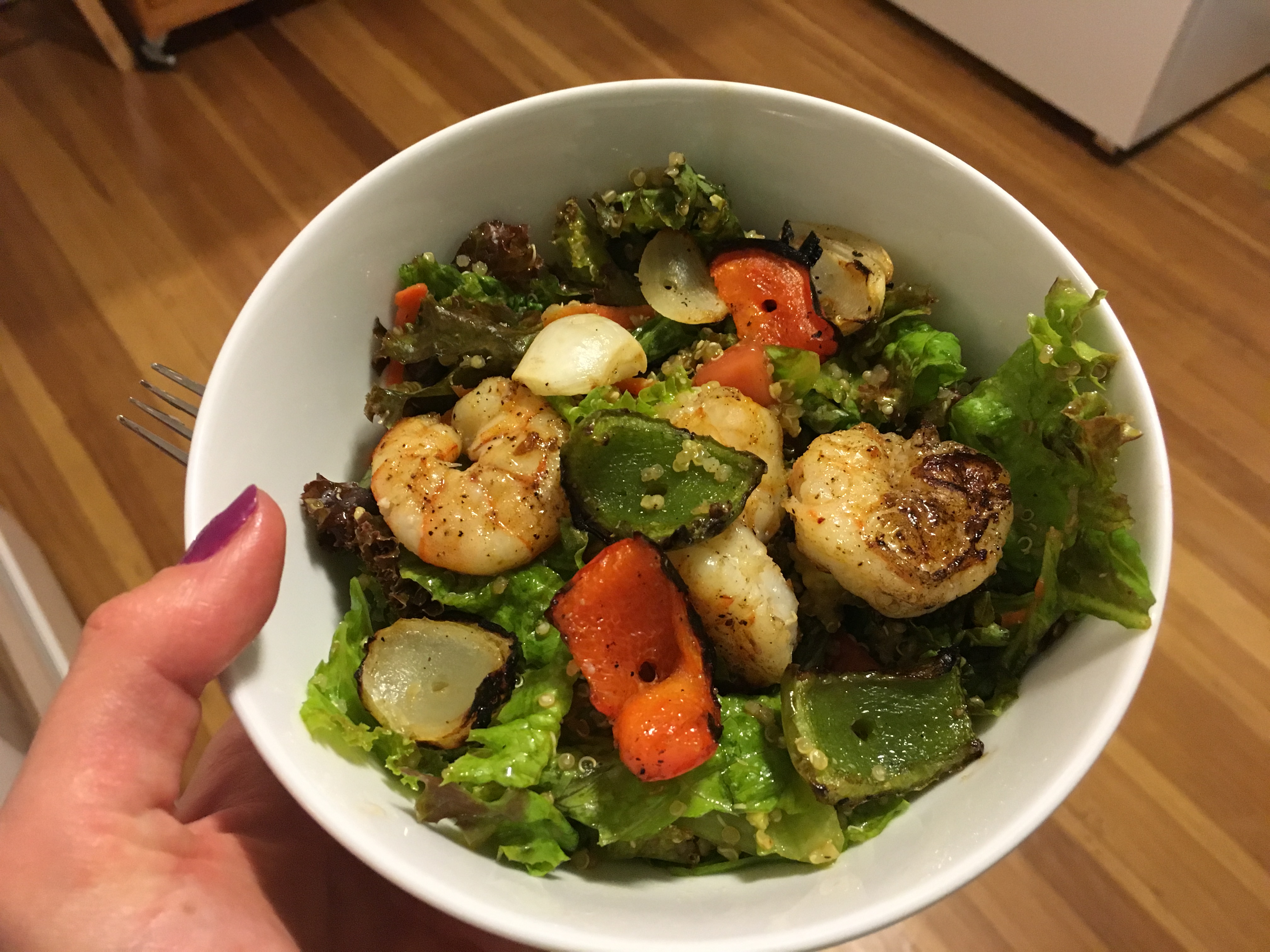 - Eating out vs. eating in- Most of the time, RM and I try to eat in the majority of the time. We shop on the weekends for the week, prep a bunch of food to have handy (I bring my lunch every day, too), but last week we kind of went on a eating out bender. Thursday we went to Buff’s (hadn’t been in SO long), Friday we went to Hopsters (again, hadn’t been in SO long) and Saturday we went to The Local in West Newton, because, well #saturdaydatenight. This is very unlike us to go so many days in a row eating out (unless we are on vacation), and while everything was delicious, we decided to eat IN on Saturday night. RM grilled up some veggie and shrimp skewers and I made a nice big salad. There’s something to be said about making your own meals- it felt really good to eat a nice meal like this!