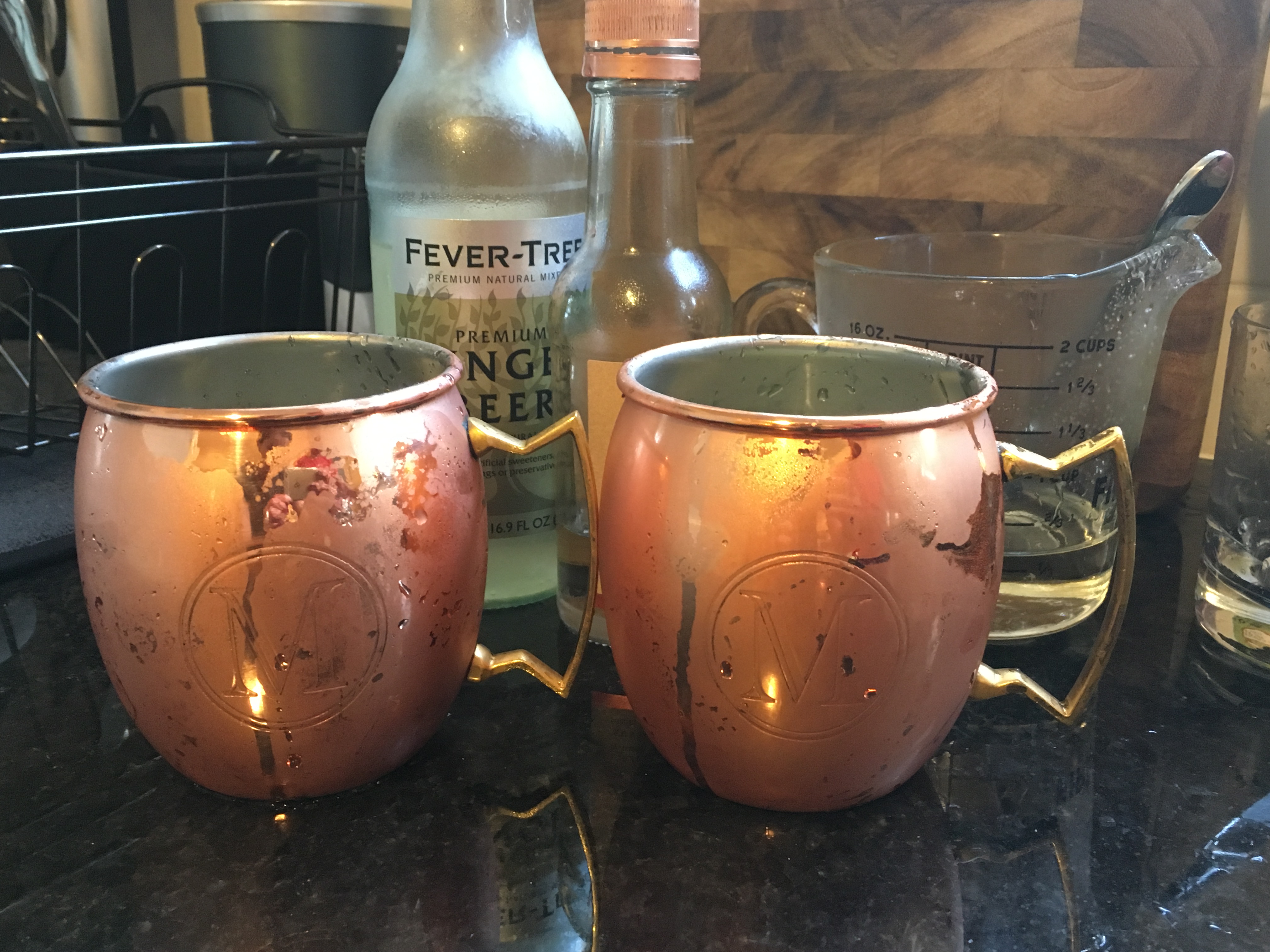 - Moscow Mules- We received some beautiful monogrammed copper mugs for our wedding (thanks, Jean!), so last weekend we decided to put them to good use by whipping up some Moscow Mules. Neither of us had had one before, but we both enjoyed them! It was a really fun cocktail hour enjoyed on our back patio.