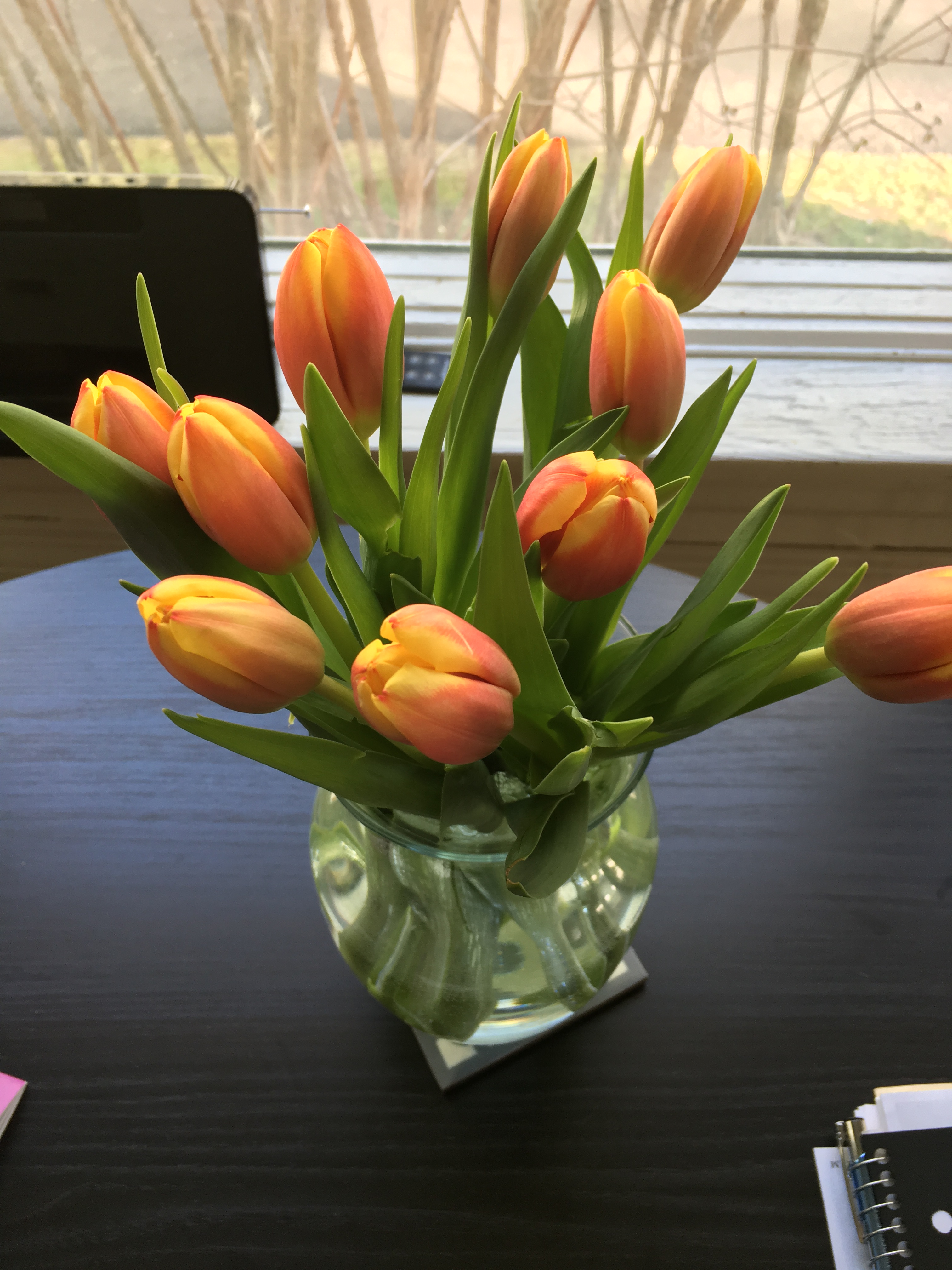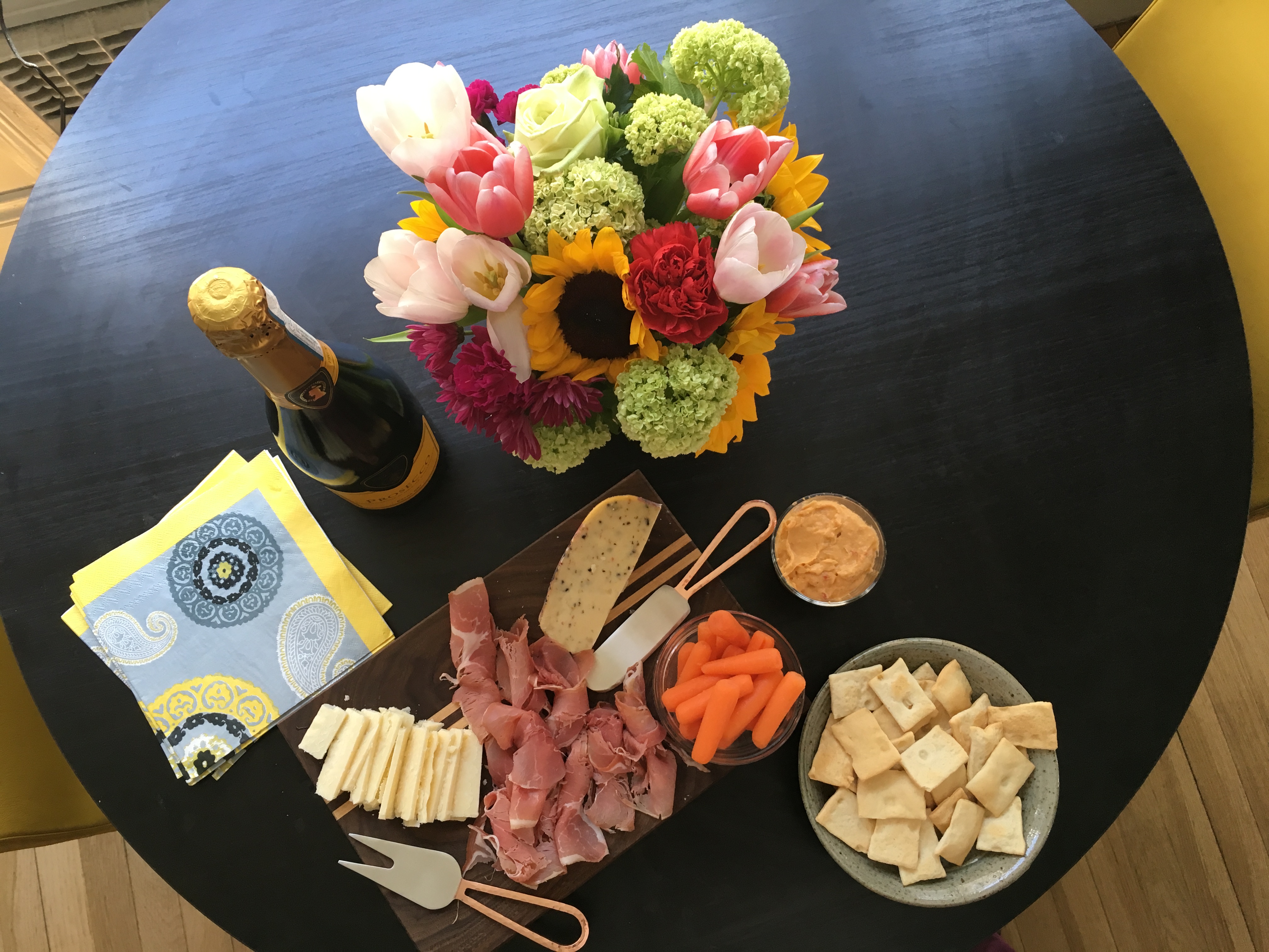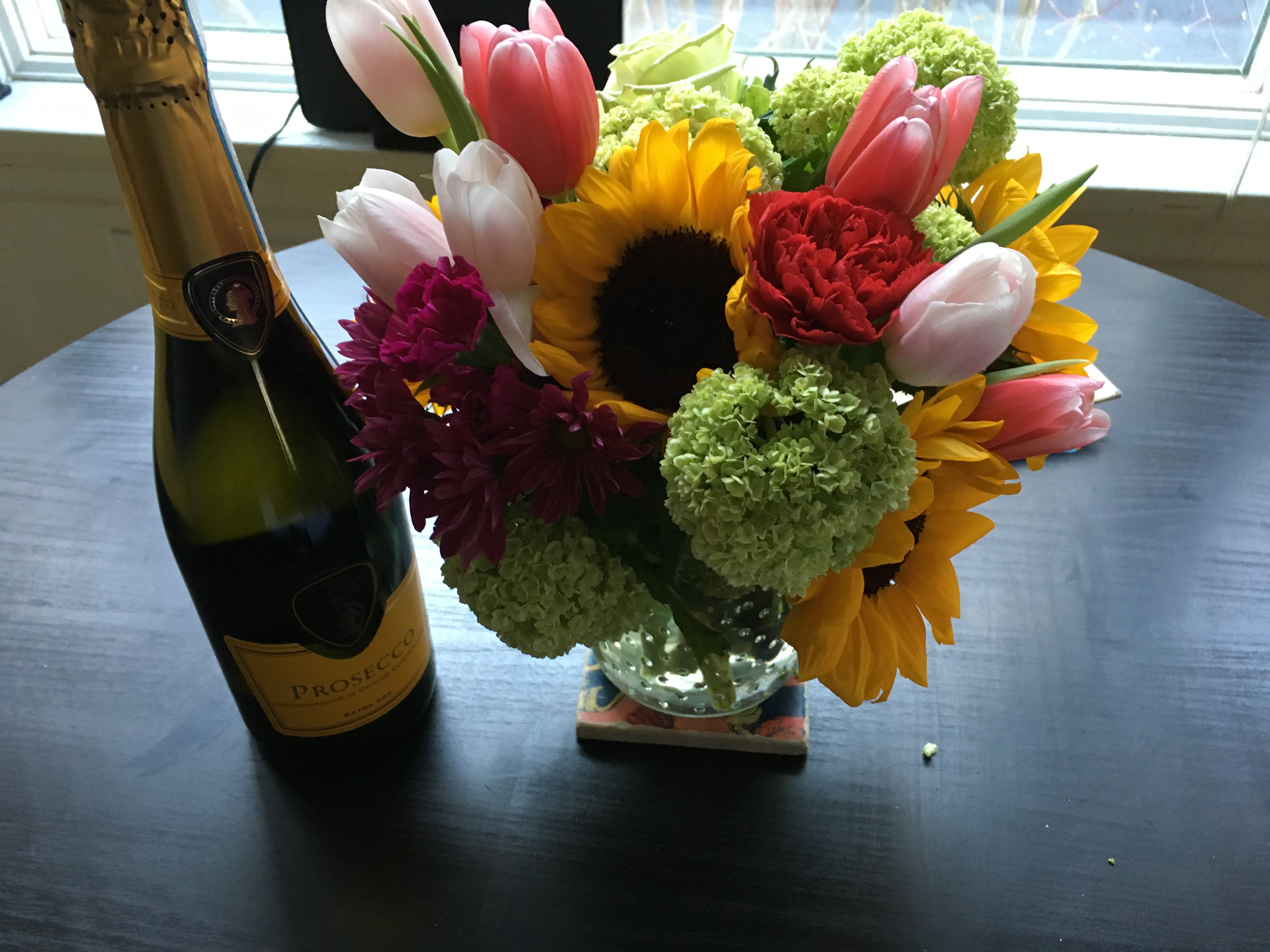 Beautiful flowers and prosecco from coworkers who came to my class