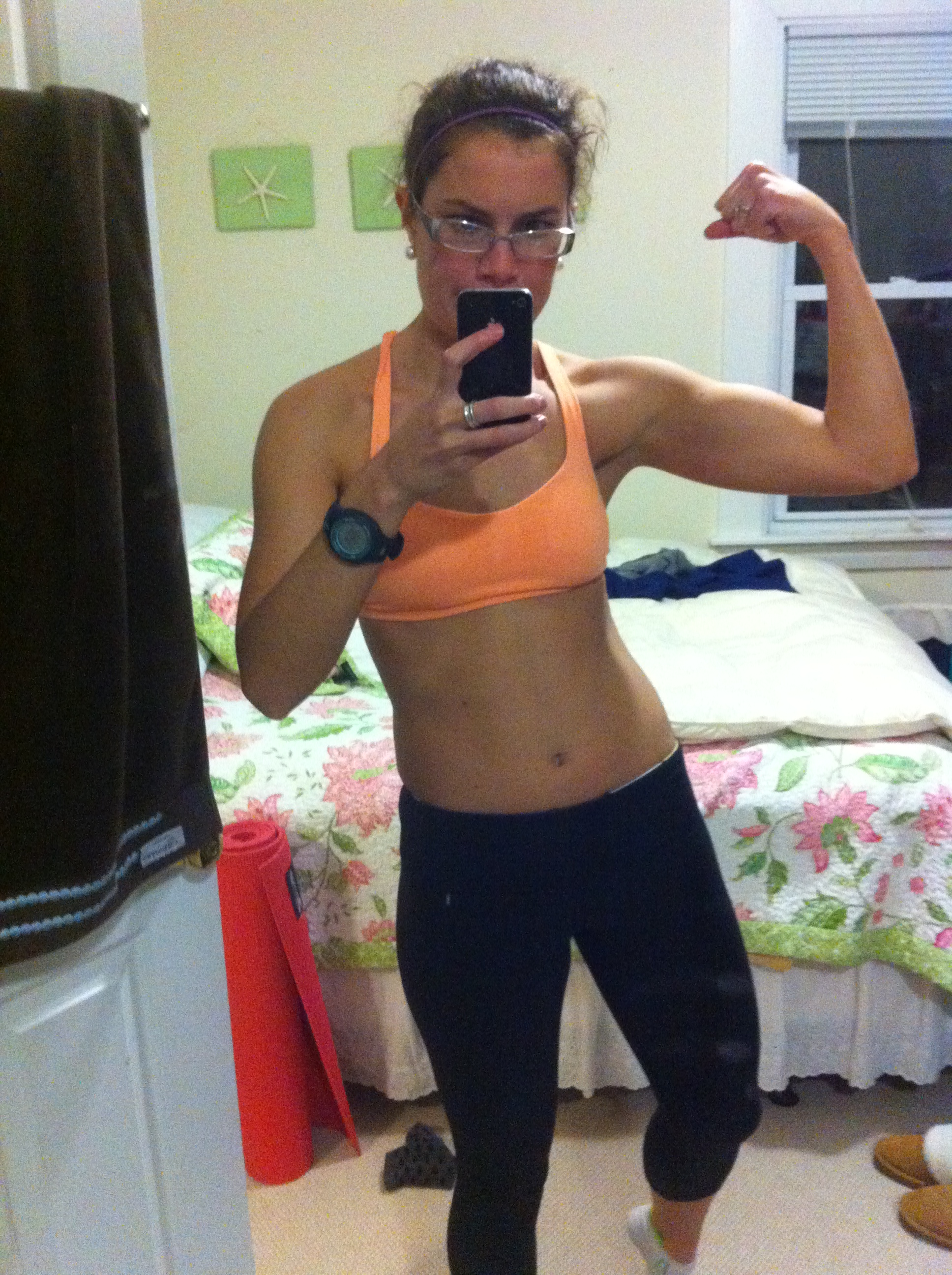 Hi, hi, hi! How is everyone doing? Now that the April Arms Challenge that my friend Athena lead is over, I thought I would take some time to reflect on how the challenge went! Now, as I mentioned in my birthday post, I am not big on setting goals and doing challenges; in fact, when presented with a challenge, I usually lose interest in what is at hand. I am so internally motivated, that I prefer to do things on my own time, on my own account and when I feel like doing them (selfish, much?), not just because someone is challenging me or because there is a prize at the end (although, don’t get me wrong, I am the biggest sucker for free things). And, I have a fear of not succeeding, or better yet, failing (there, I said it. After Friday’s post, I feel like I can/should share that stuff with you guys). Needless to say, when Athena hosted her January Abs Challenge, my response was “I wish I had time, but with all the teaching I am doing, I don’t want to add another thing to my plate.” Okay, this is partially true- taking on any sort of “challenge” certainly would add more to my already busy schedule, but I could’ve fit that in. No doubt about it.