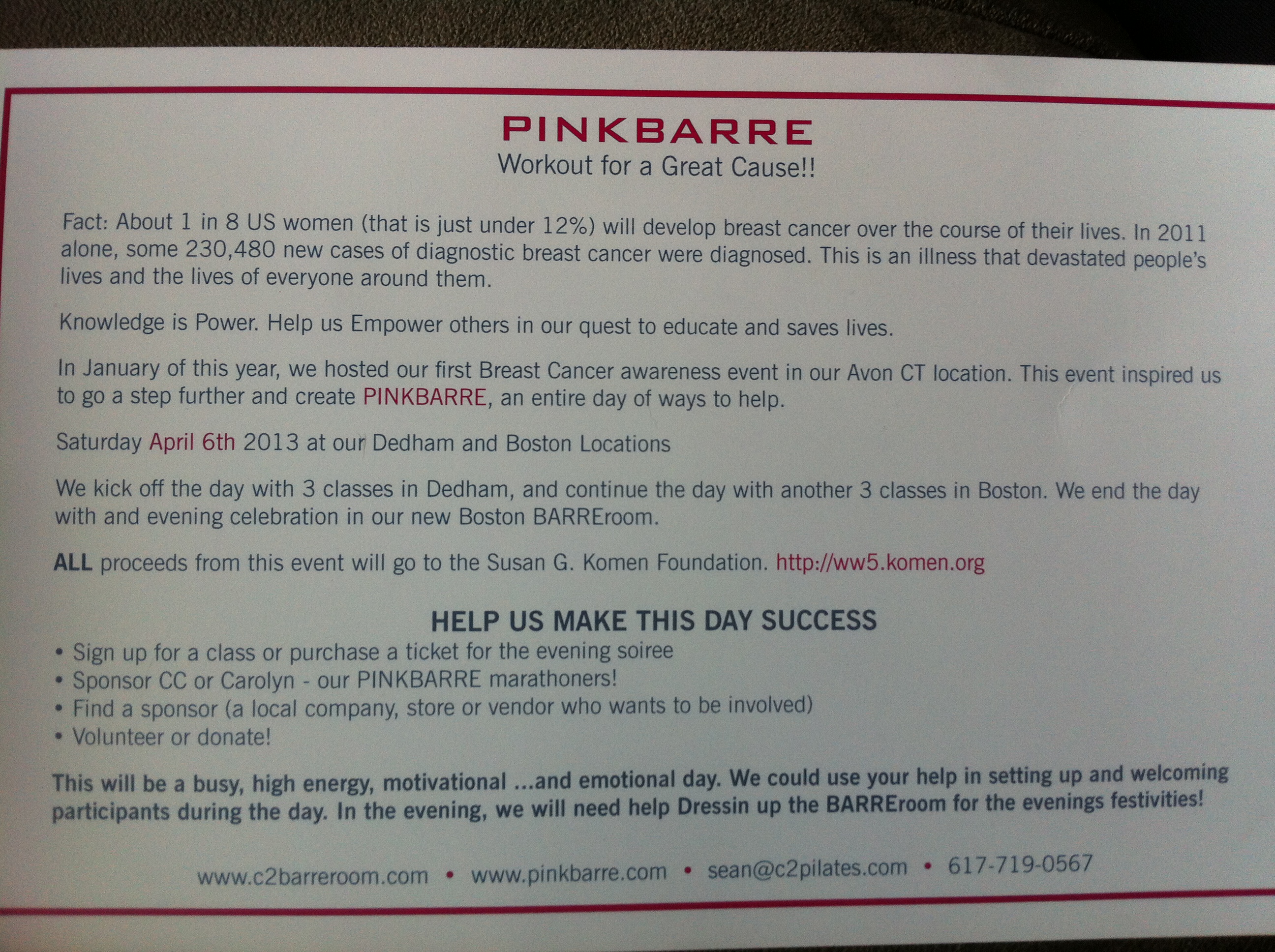 I’ll let the cards and the website do the talking, but I will say that we actually did the PINKBARRE workout and I loved it. There are many areas where modifications can be made depending on what fitness level you are at, so there is no need to be intimidated or feel like you can’t keep up. I had no idea what I was doing but I just watched and listened and tried as best as I could to move my body in the way they were showing us to move them:) Unfortunately, April is a ridiculously busy month for me (birthday month!!) so I have plans all day and night on the 6th, but I would definitely be there if I could!