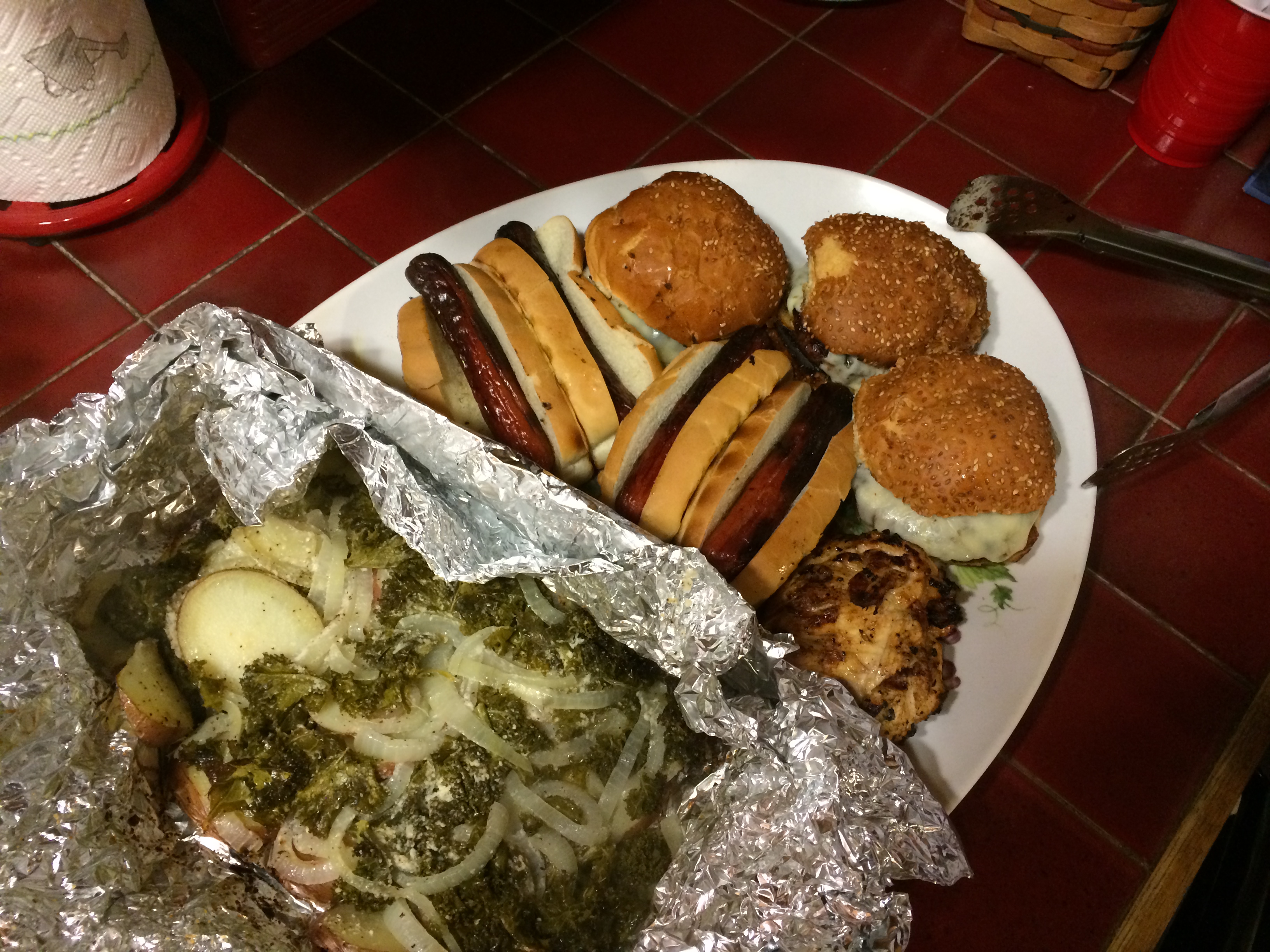 We swung by his mother’s for dinner after and then when we got home I did some food prep, including this incredible looking spaghetti squash which has sautéed onions, garlic, red pepper, zucchini, summer squash, spinach and ground pork. Topped with a little cheese and you’ve got your self a super tasty and healthy meal!