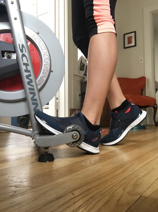True story: Monday at the gym, one of  the trainers was wearing a pair of TIEM slipstream shoes and I told her I had the same ones. Her client was shocked to hear that the shoes on her feet were spin shoes and not just regular sneakers. The trainer said she was tired of lugging around multiple pairs of shoes and that the TIEM ones were great because she could wear them to train AND teach her spin class. We agreed we wouldn’t wear them to go running or do any sort of high impact workout- because they are really not made for that- but that they work great for what she was doing with them.