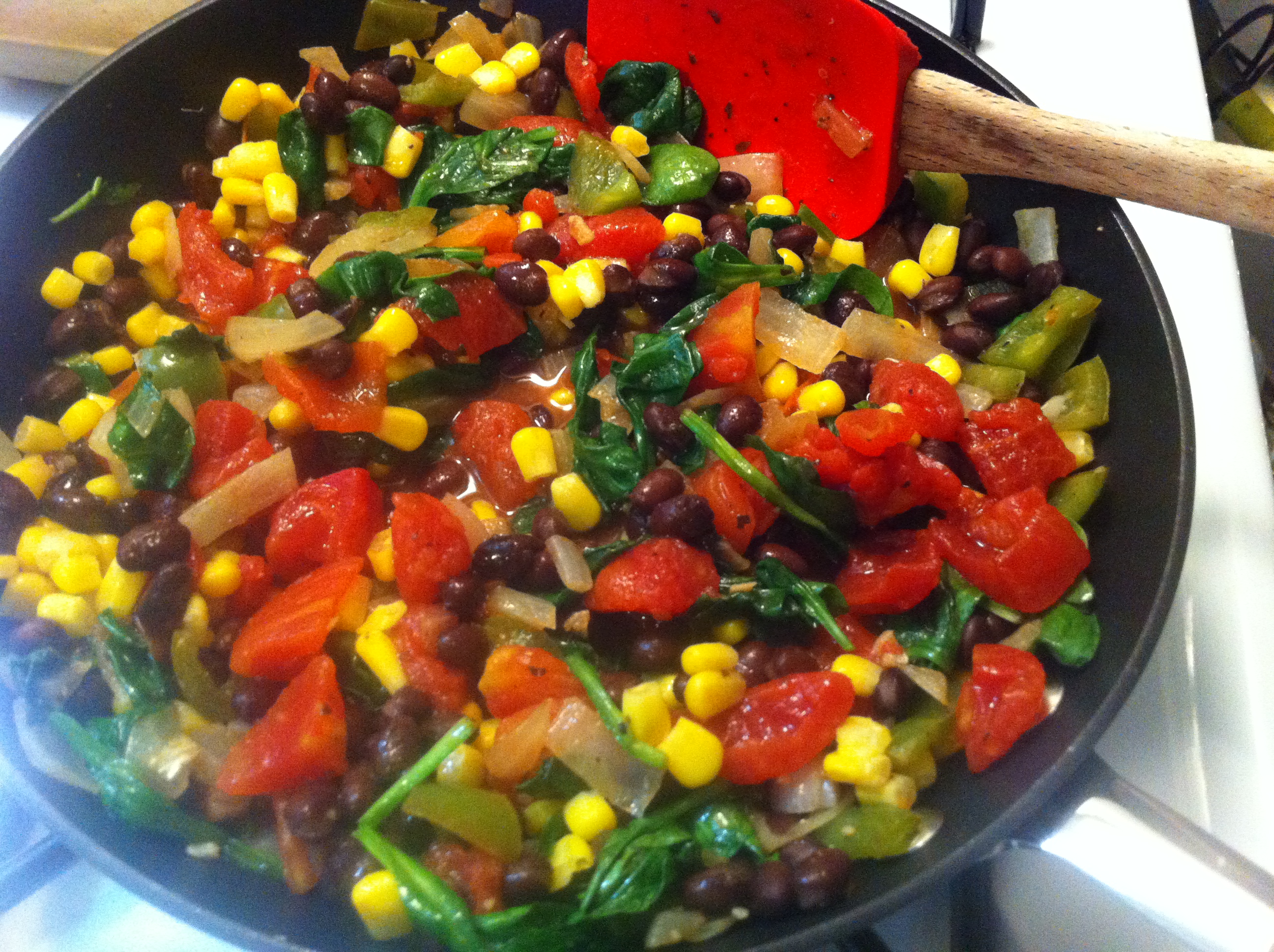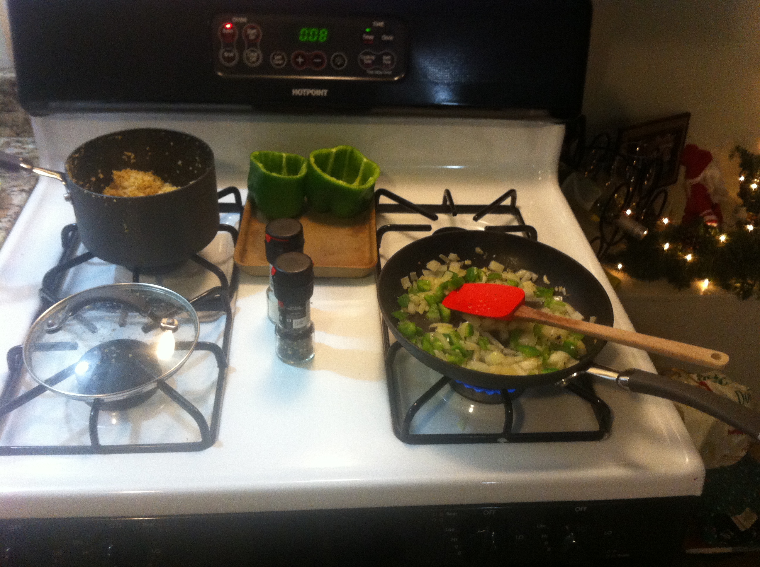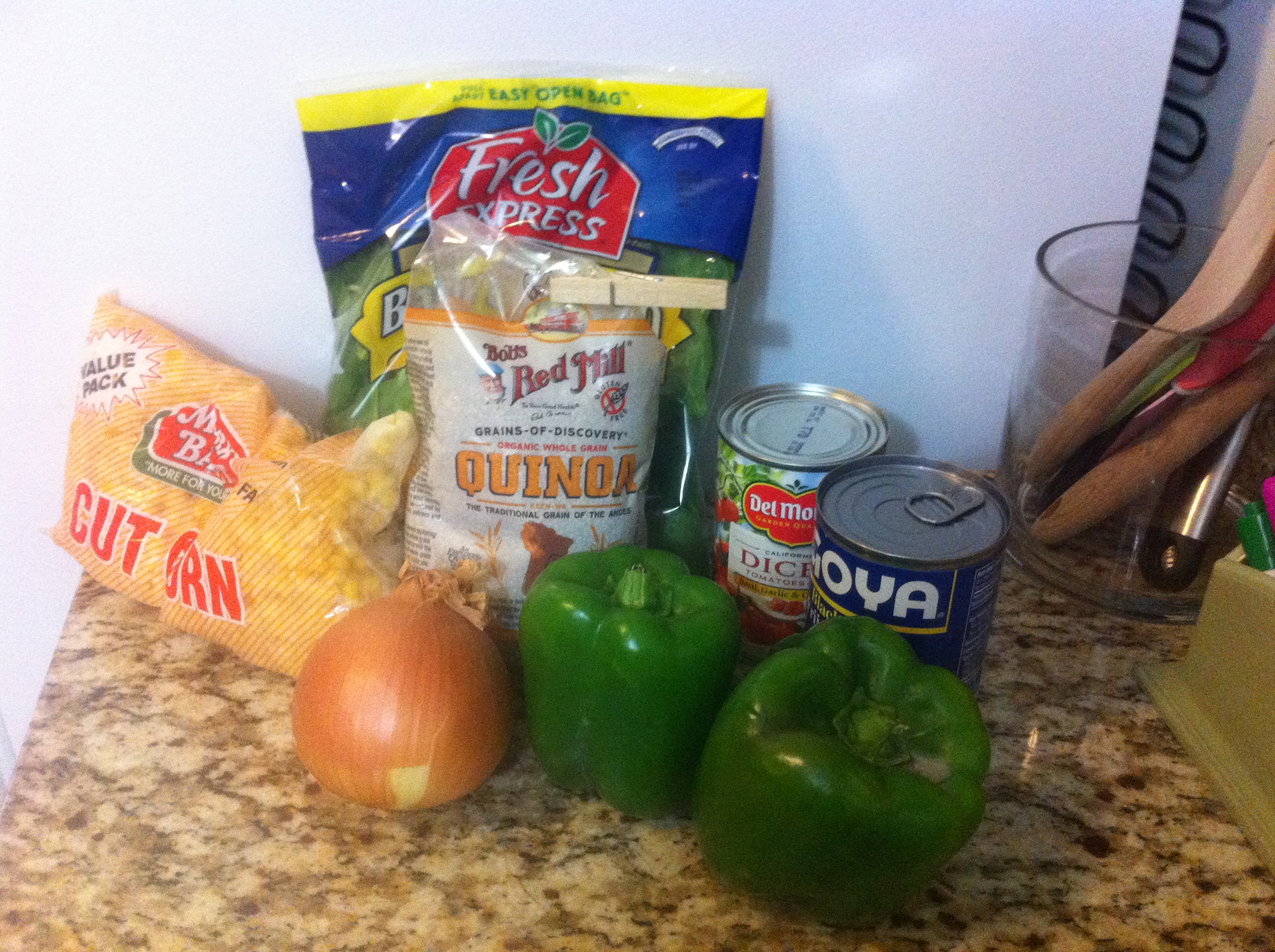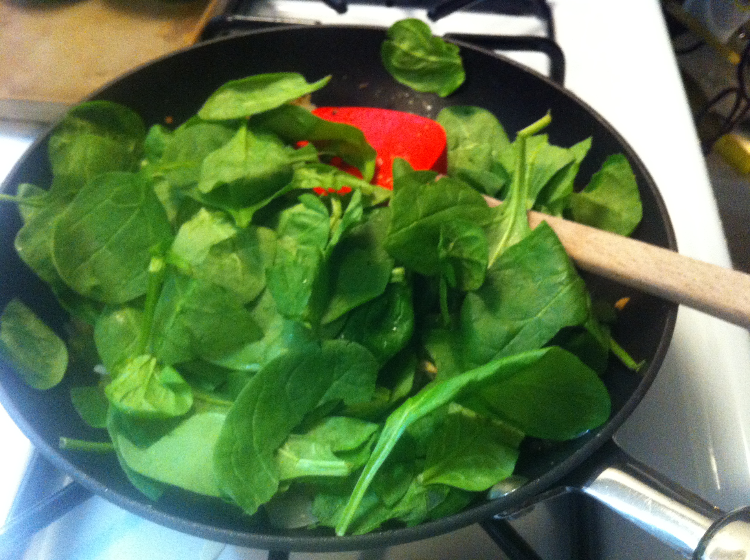 1. Pre-heat your oven to 350*. Cut up your red peppers and onion and gather your spinach.