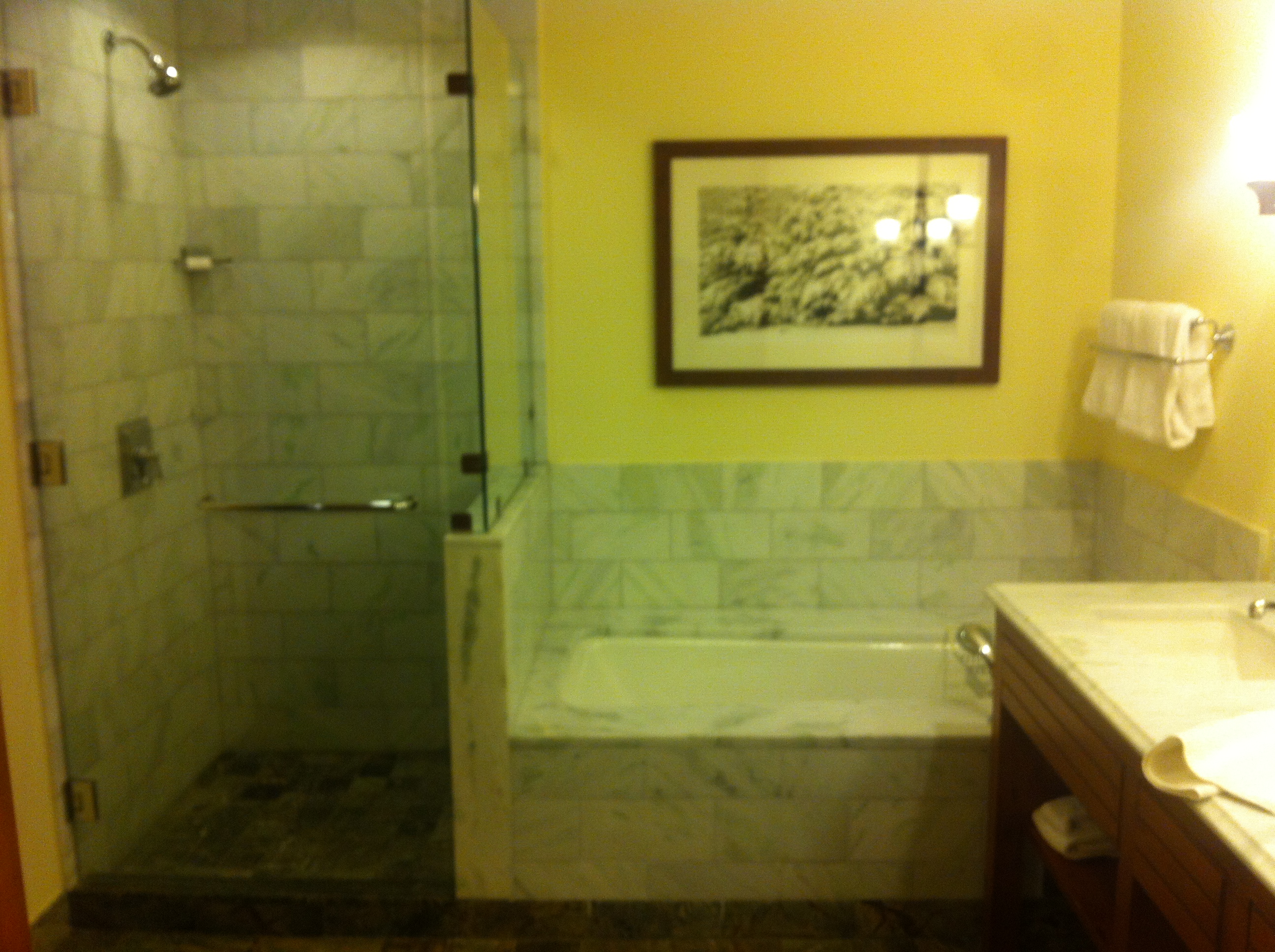 Seriously, the bathroom was bigger than my bedroom here, and the views from the balcony literally made me want to sit out there and just relax and take it all in; that never happens! I was tempted to crank the AC so I could have an excuse to use the fireplace 😉