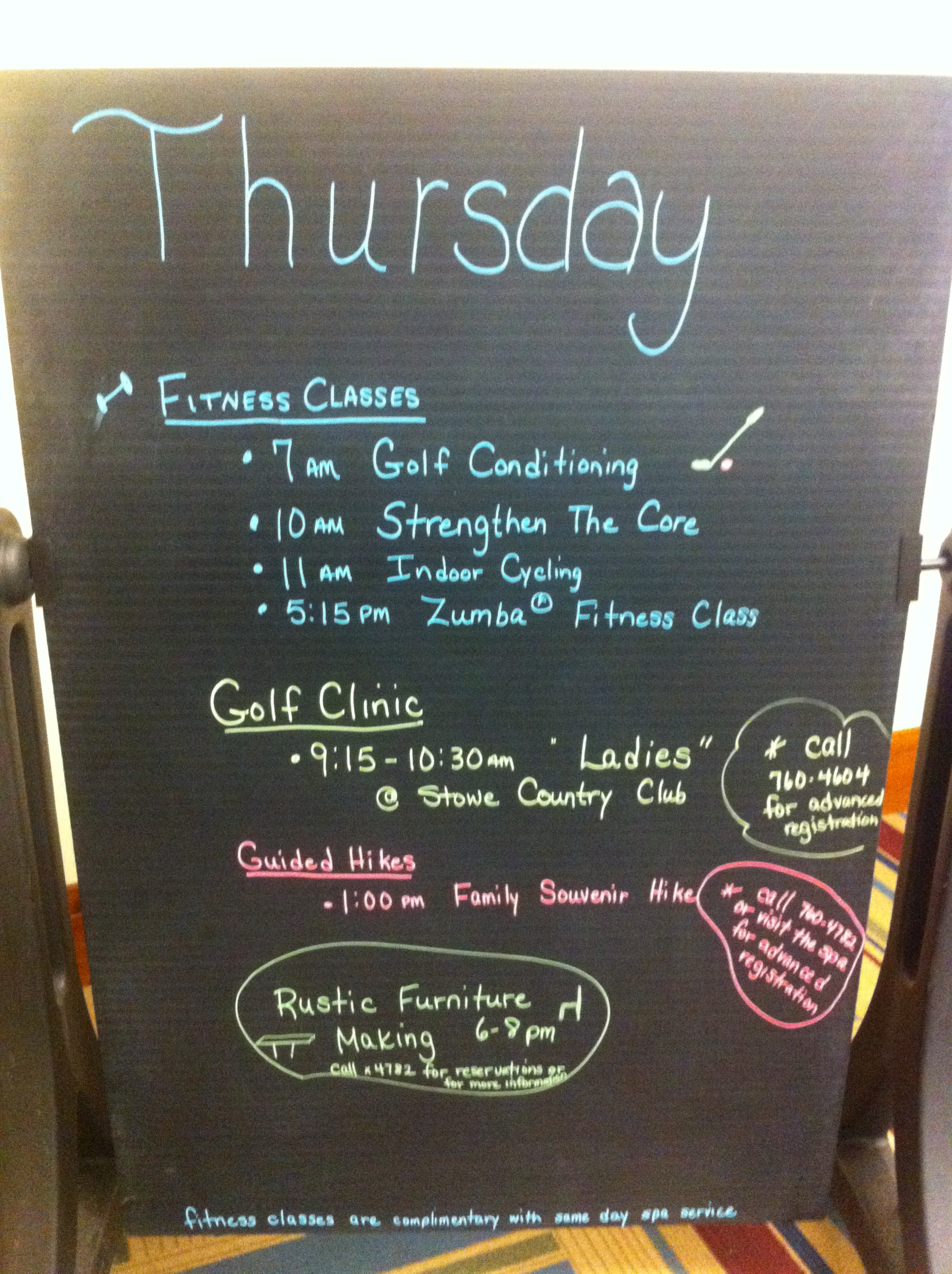 Questions for you: Have you ever been to Stowe? Do you utilize hotel gyms? What’s your favorite ice cream flavor?